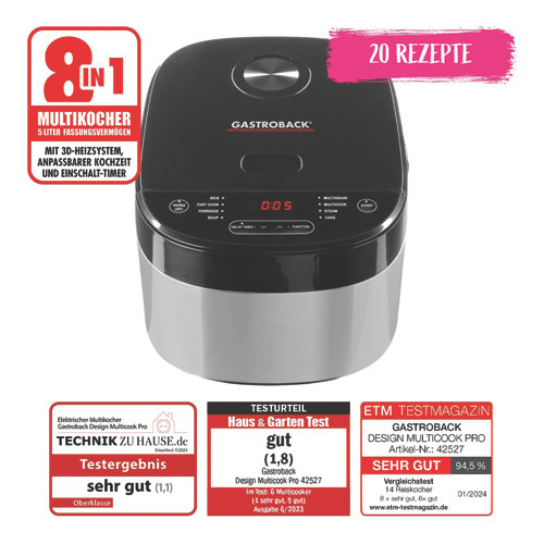 مولتیکوکر Gastroback مدل 42527، گزینهای عالی برای افرادی است که به دنبال یک دستگاه جمعوجور، باکیفیت و چندکاره برای تسهیل فرآیند آشپزی روزمره خود هستند. این مدل با تمرکز بر نیازهای اساسی آشپزی، از پخت برنج گرفته تا بخارپز کردن و تهیه کیک، عملکردی قابل اعتماد و نتایجی مطلوب را ارائه میدهد. طراحی زیبا و کیفیت ساخت بالا، این مولتیکوکر را به انتخابی هوشمندانه برای آشپزخانههای مدرن تبدیل کرده است.