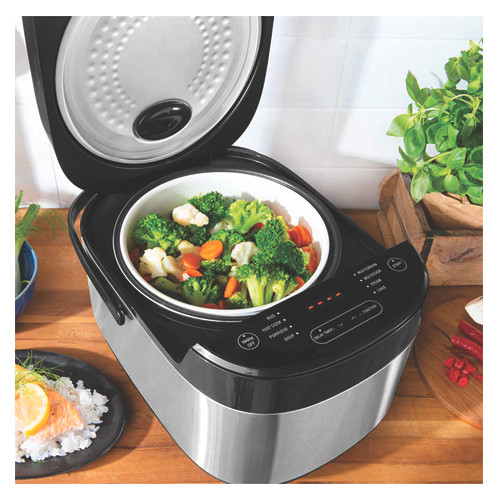 بخارپز (Steam): با استفاده از سبد بخارپز مخصوص، سبزیجات، ماهی، مرغ و سایر مواد غذایی را به سالمترین شکل ممکن طبخ کنید. این روش پخت، مواد مغذی را به بهترین نحو حفظ میکند.